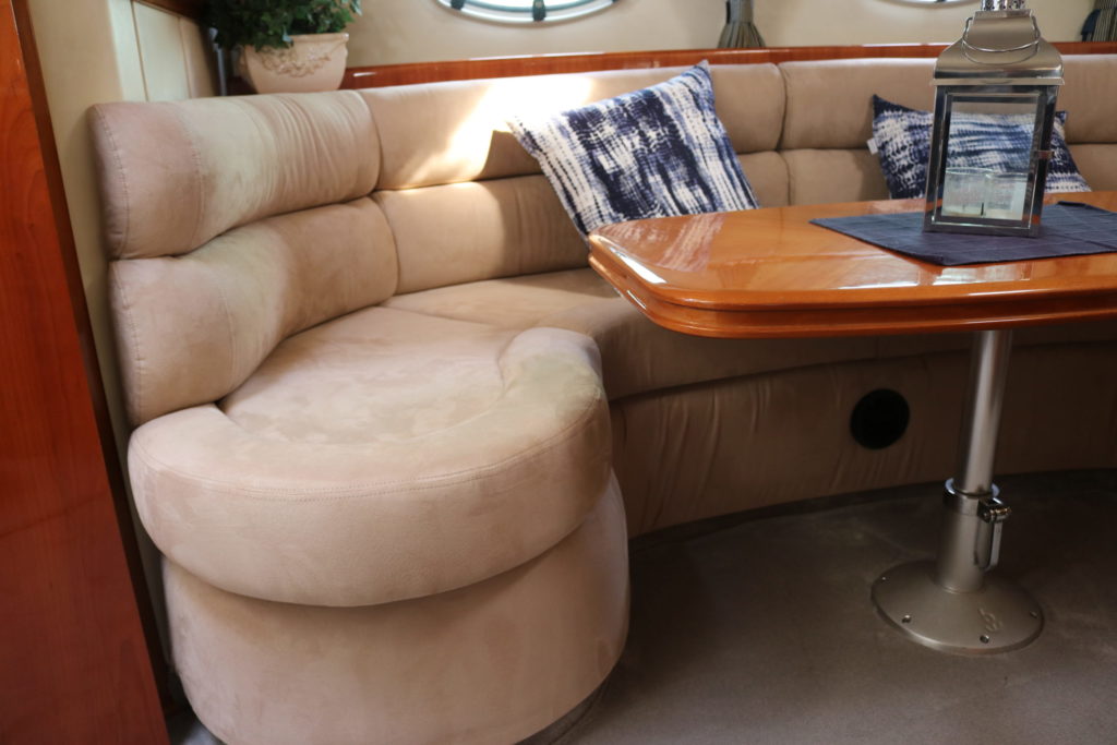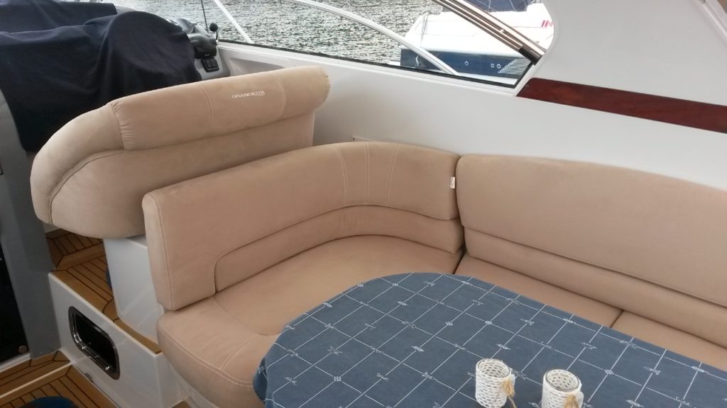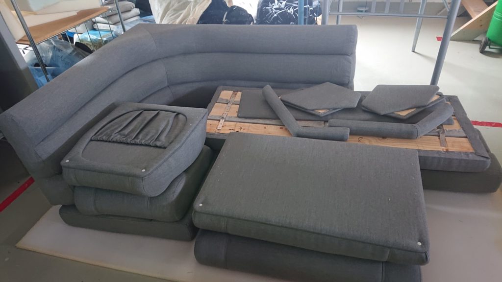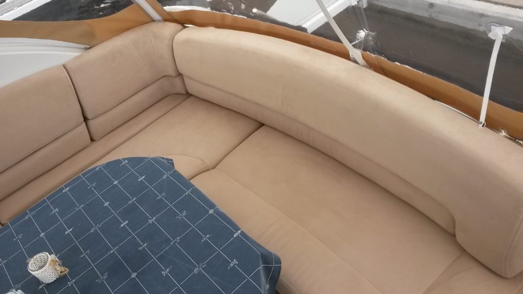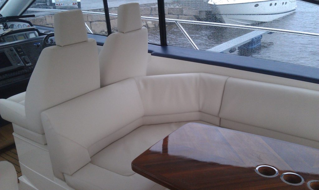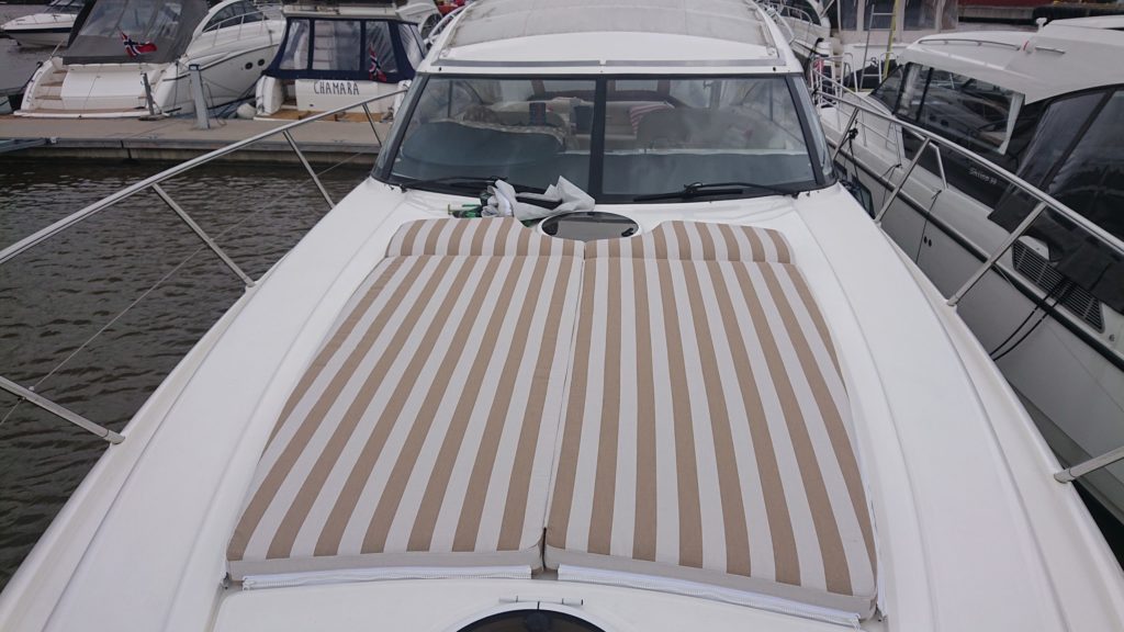 RHJ AS tilbyr omtrekk av puter og seter i alle varianter, enten du skal trekke om i skai, sunbrella, silvertex eller niroxx marine leverer vi dette.
