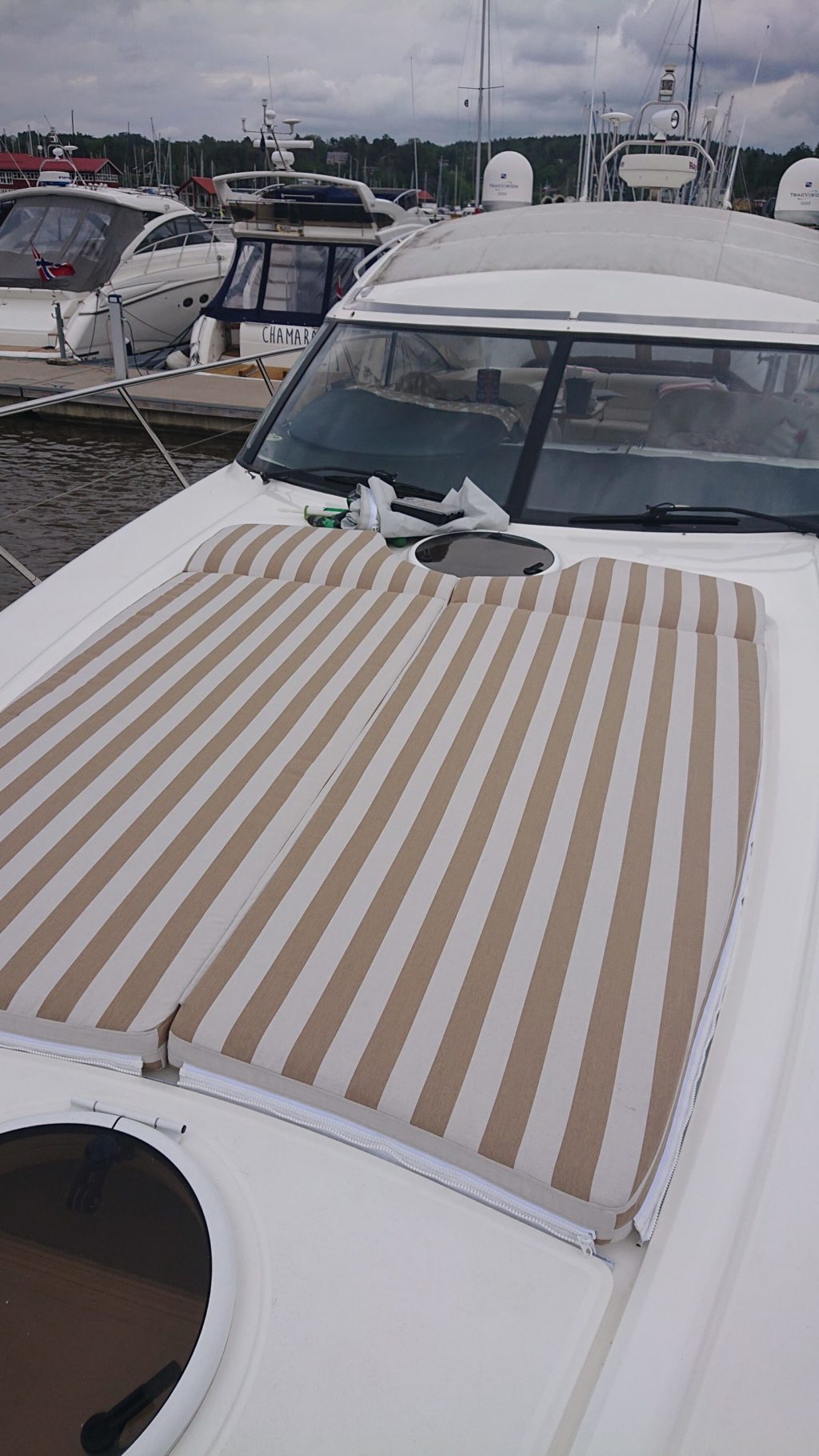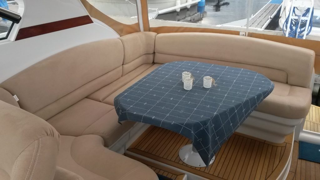 Leverer du inn en komplett båtinnredning i oktober/november for omtrekk får du gratis brodering av 2 stk logoer i putene dine, husk da og opplys om hva du ønsker å få brodert inn ved innlevering av puter.